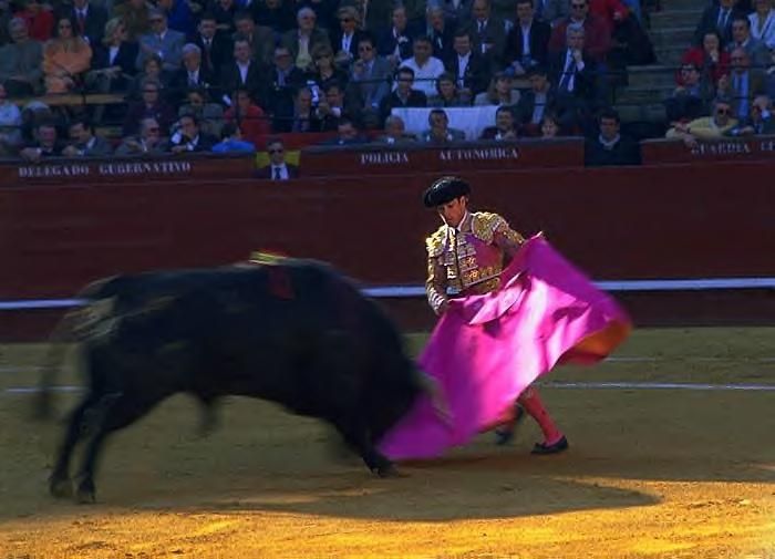 Après la sortie du taureau, le matador ou le torero (non confirmé encore), et ses peones effectuent des passes de cape « capote », pièce de toile généralement de couleur lie de vin à l'extérieur et jaune (ou bleu azur) à l'intérieur, qui sert de leurre. Ces premières passes de capote permettent au matador d’évaluer le comportement du taureau : corne maitresse, manière de charger, course, etc.